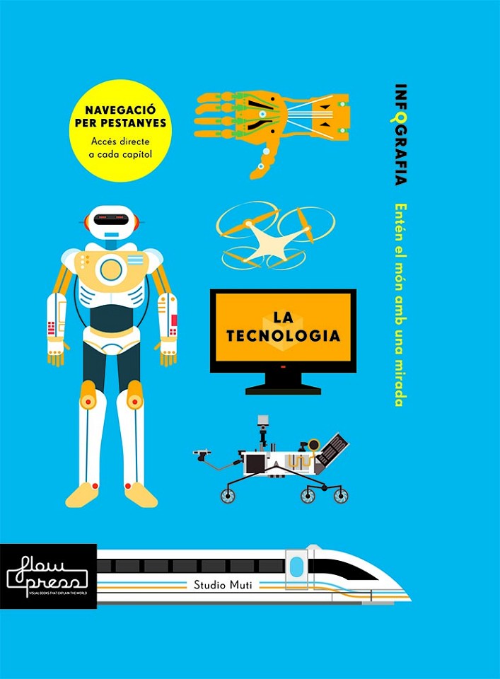 El món de la tecnologia, investigat per l'influent Simon Rogers i visualitzat mitjançant infografies pel brillant Studio Muti, en un llibre de colors vibrants i amb pestanyes. El primer llibre de la col·lecció flow.kidz dirigida a joves lectors. Debutem amb el visualment impressionant títol INFOGRAFIA: TECNOLOGIA. Els fets més complexos sobre la tecnologia s'expliquen a través de gràfics preciosos que sorprenen, diverteixen i informen en cada pàgina. En els set capítols, aprendrem la història dels ordinadors des de l'àbac a la tauleta, veurem què hi ha dins d'un telèfon intel·ligent, donarem un cop d'ull als robots que treballen a tot el món, descobrirem com funciona la impressió en 3D, seguirem els passos de l'animació CGI, etc. Continguts: ordinadors, robots, invents, transport i comunicacions.